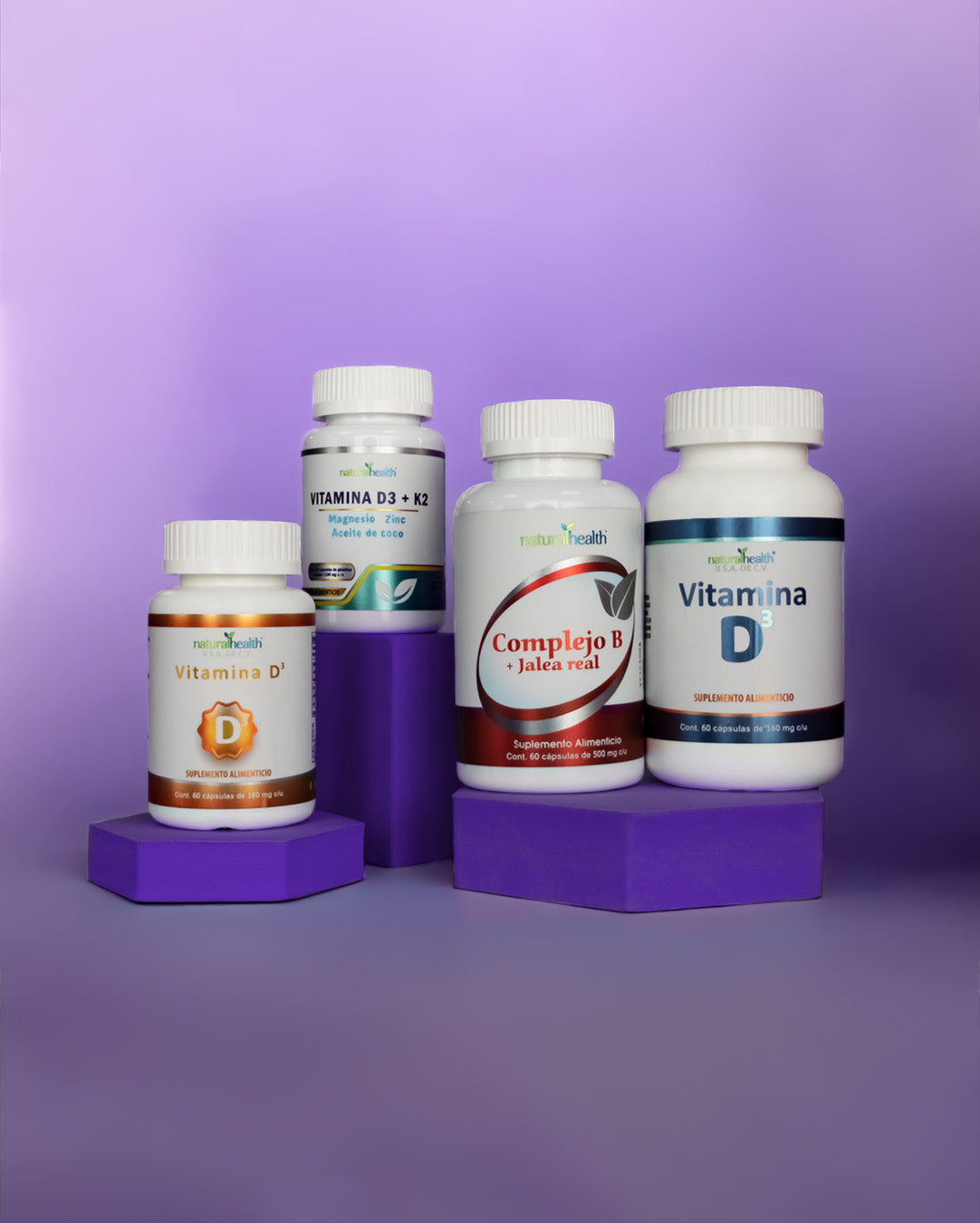 Vitaminas ideales como Complejo B, D3 y K2 para complementar tu alimentación.