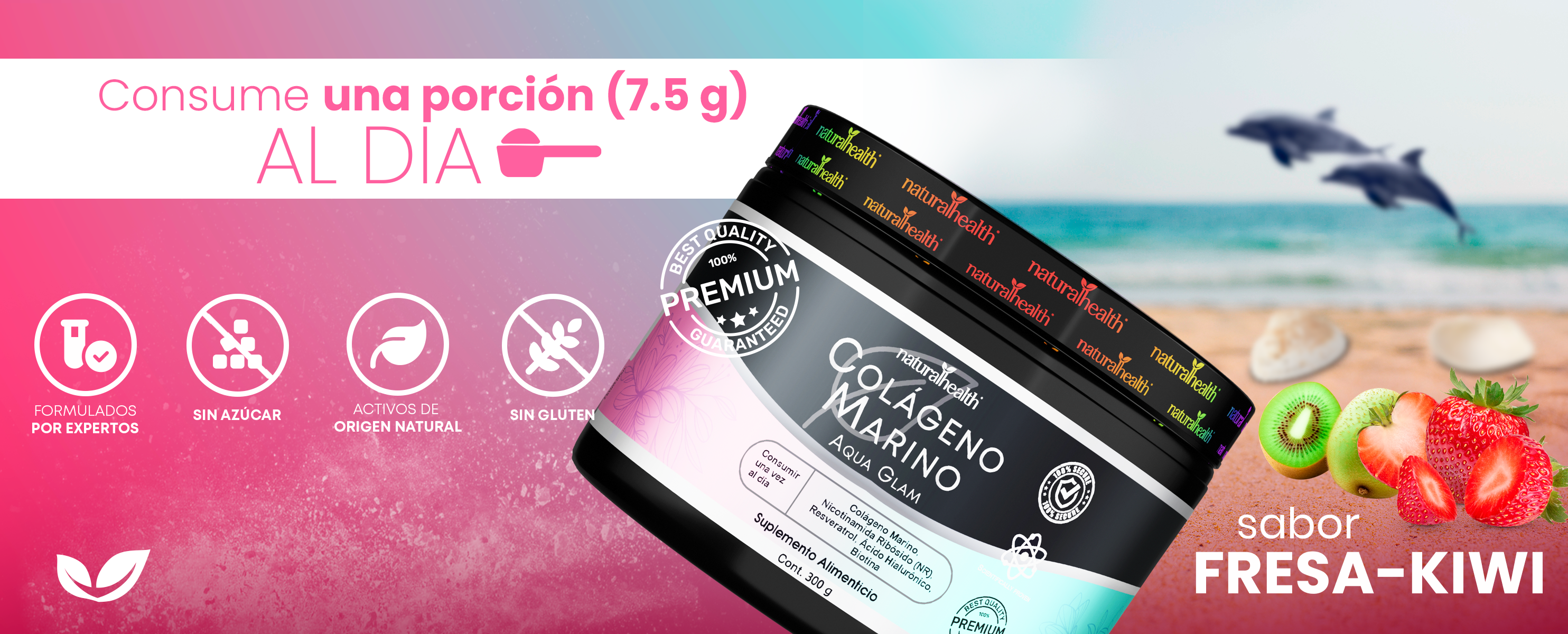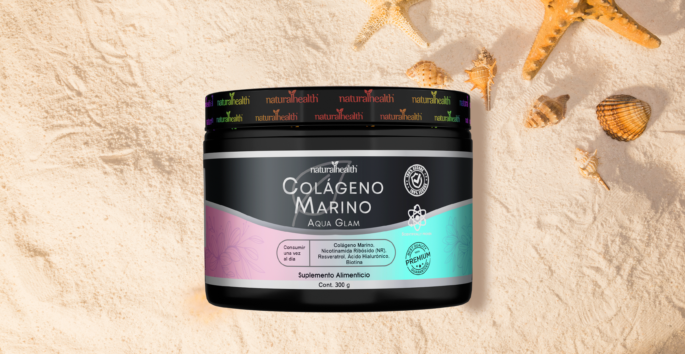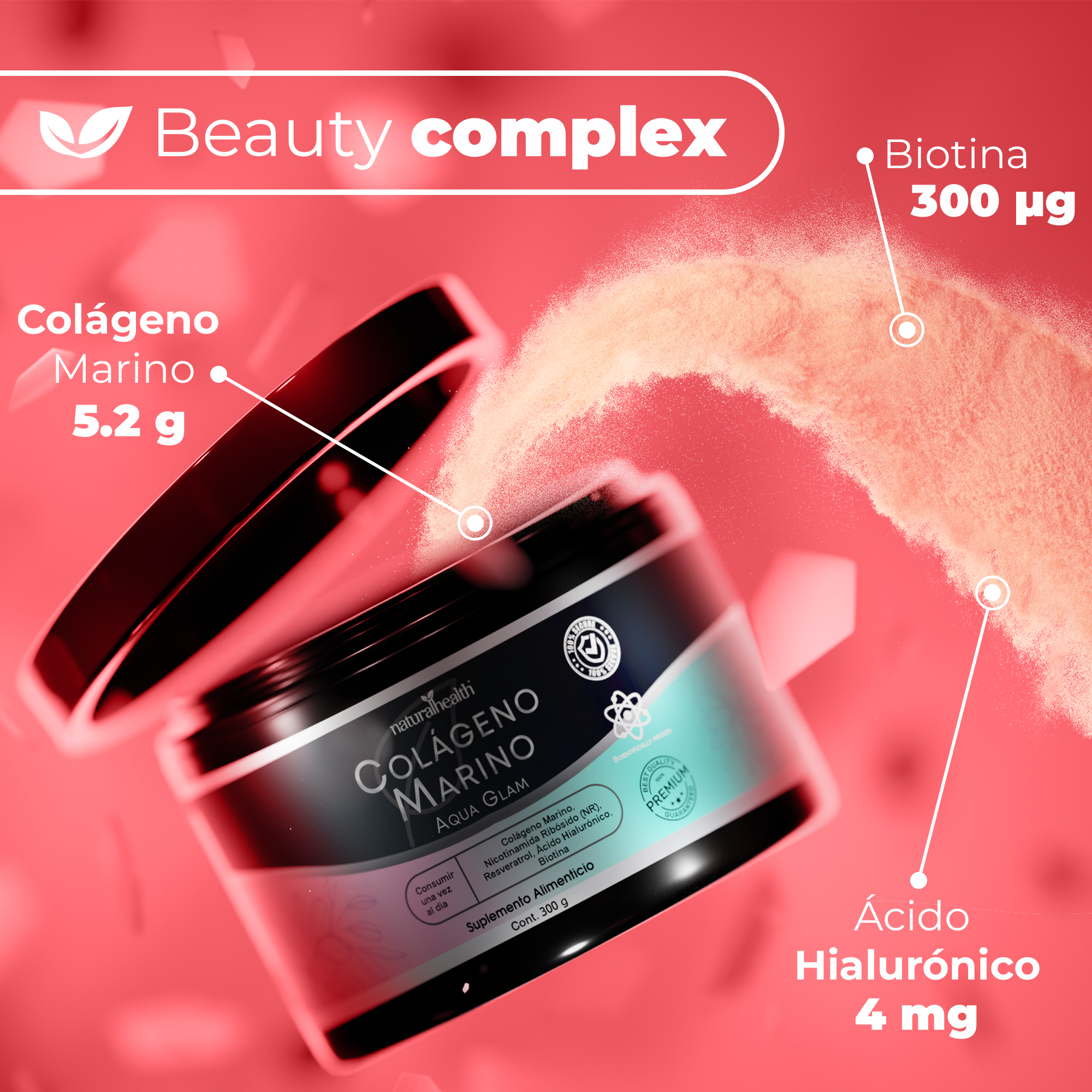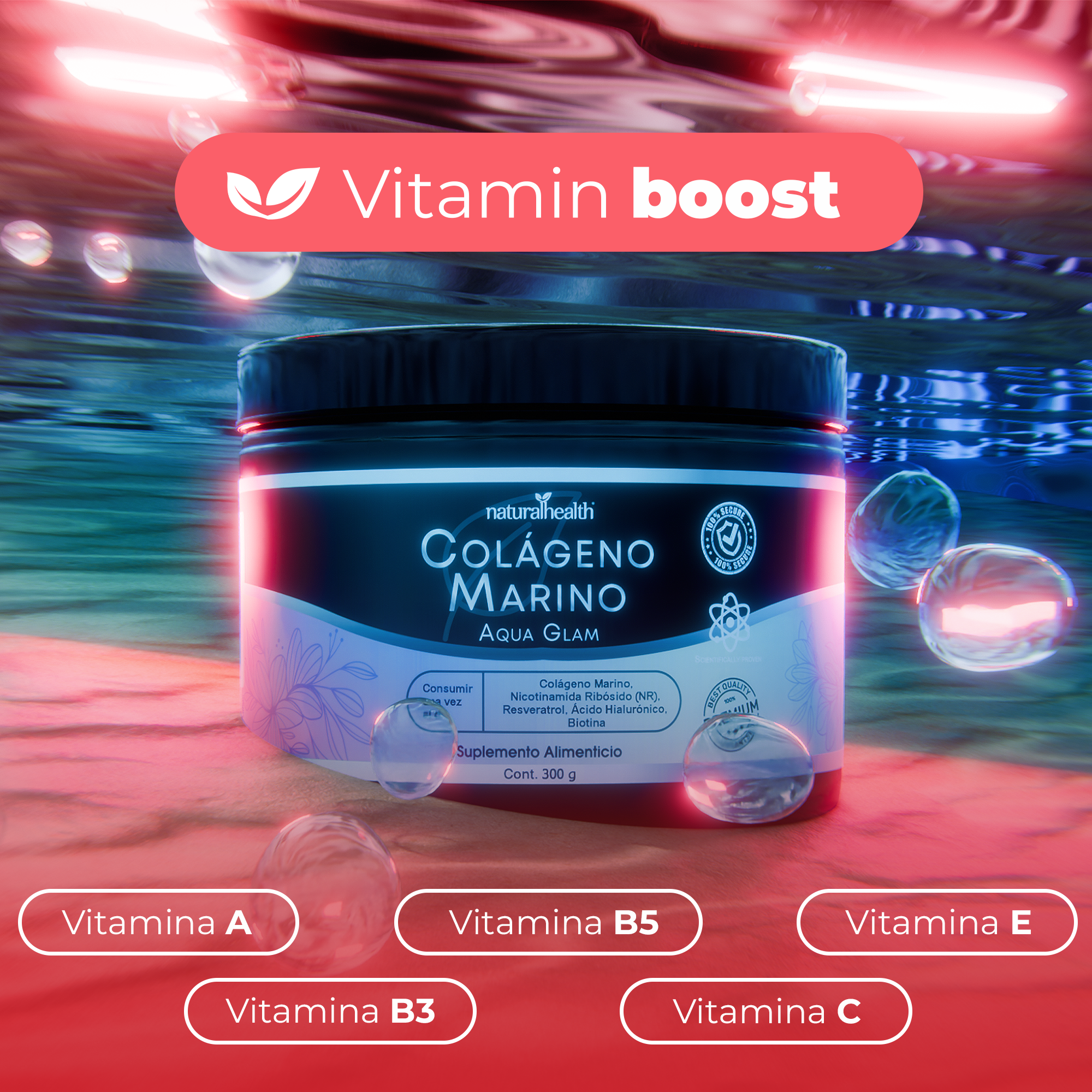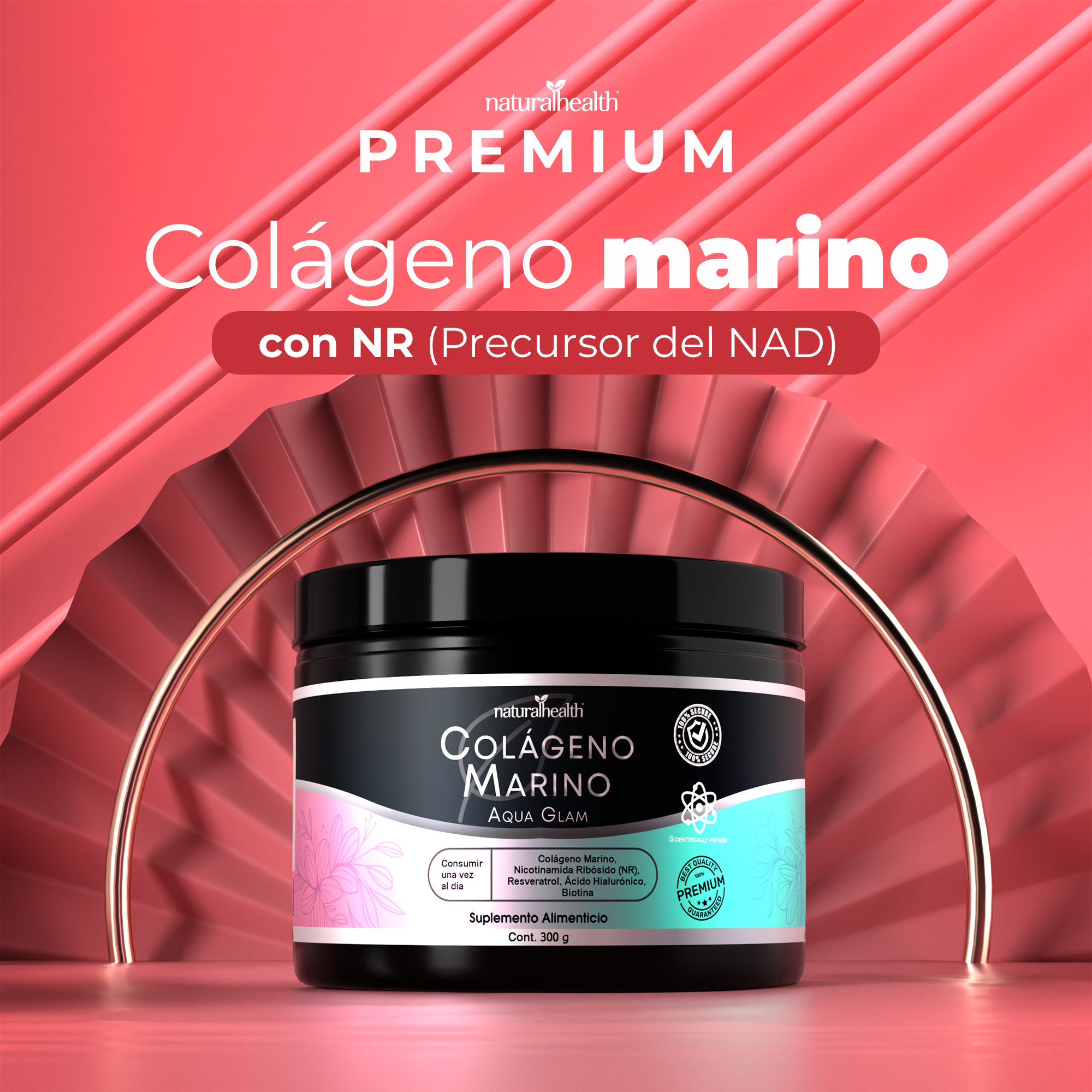 Aqua Glam | Colágeno marino con Resveratrol, NR, Vitaminas, Biotina y Ácido Hialurónico
