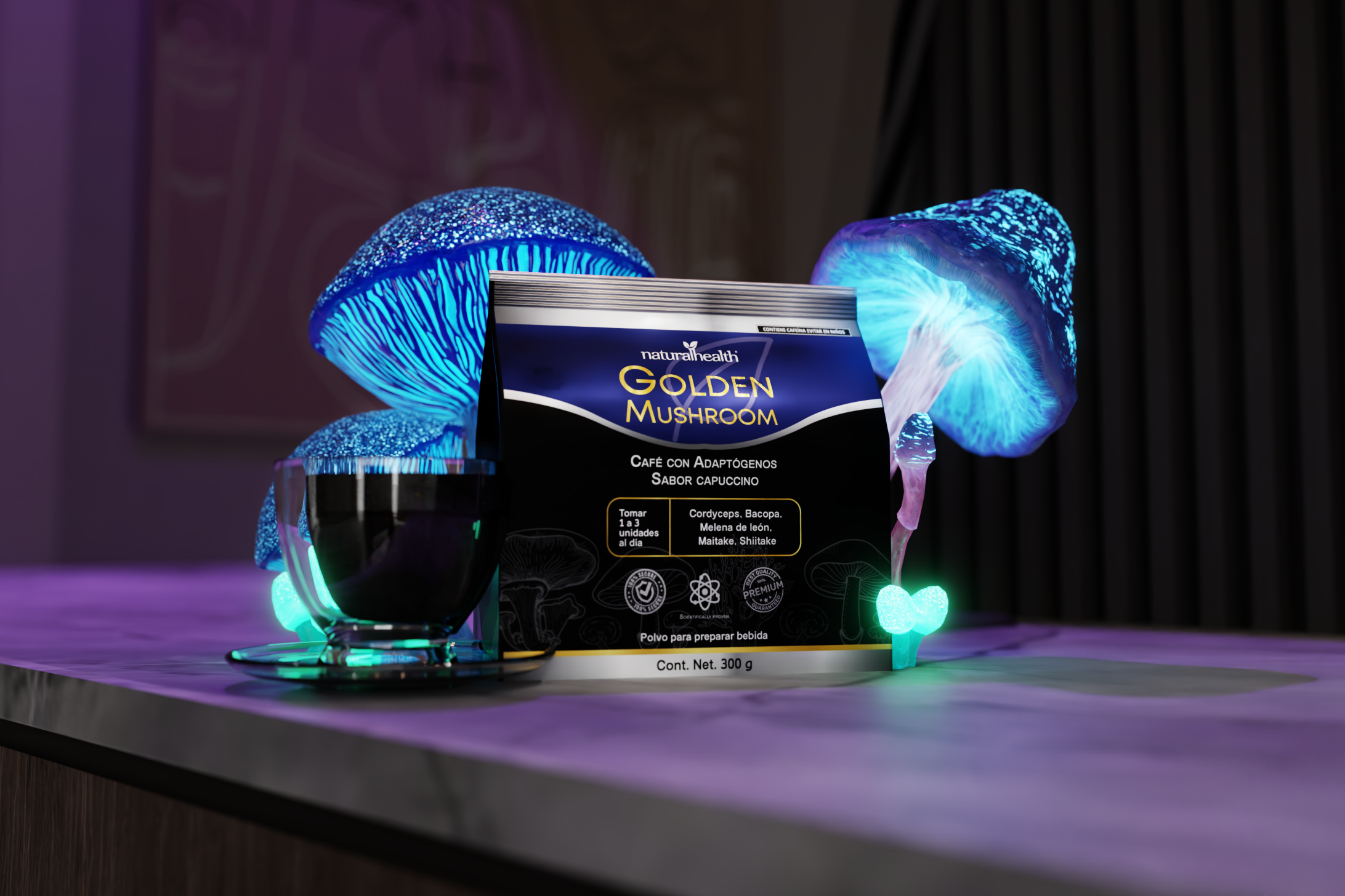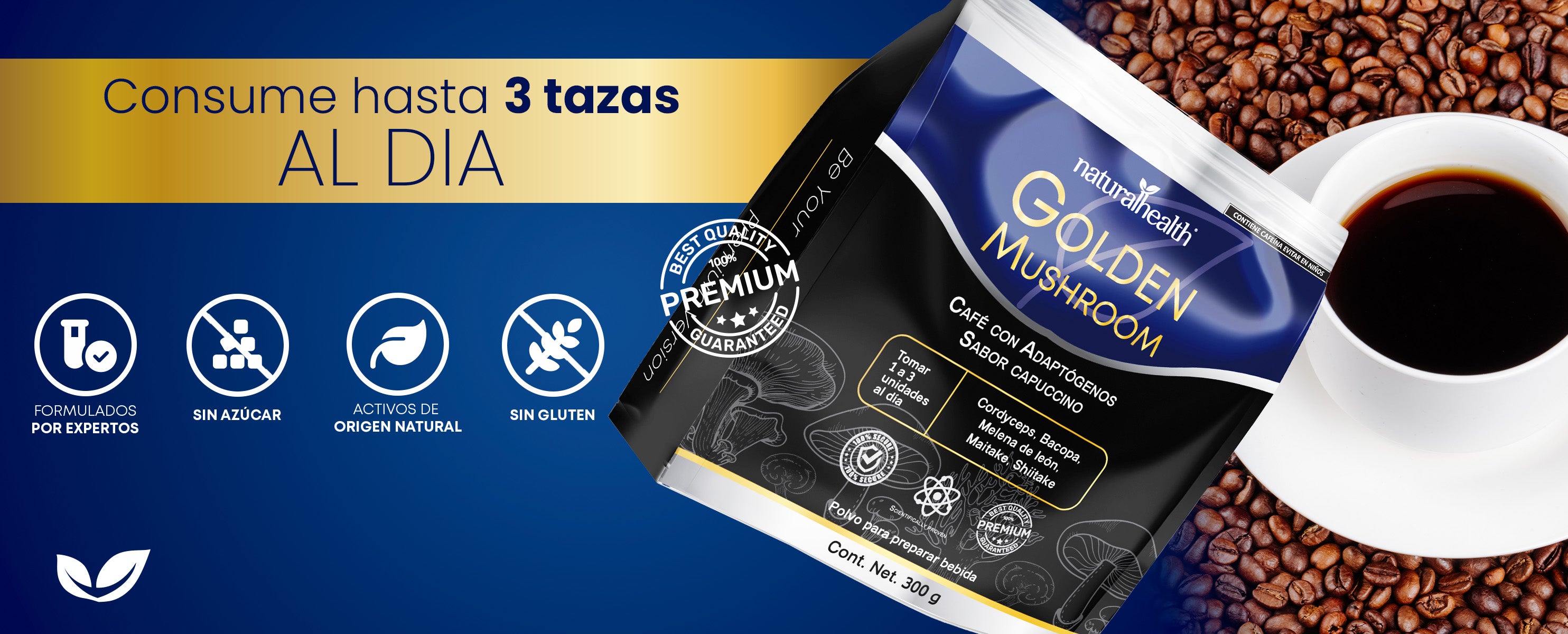 Golden Mushroom | Café con Melena de León, Maitake, Shiitake, Cordyceps y Bacopa
